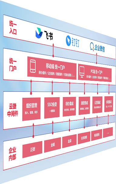 对协作平台提供支持服务,,,支持企业应用与协作平台对接,,包含组织同步、、、消息集成、、待办集成等。。。支持目前主流的协作平台:钉钉、、企微和飞书。。。